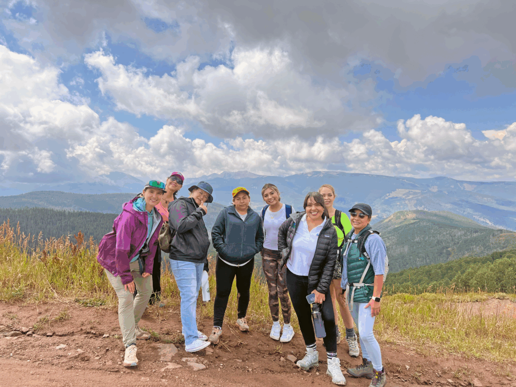Tuvimos el placer de colaborar con Campeones del Sistema del Condado de Eagle, un programa que trabaja para empoderar a la comunidad latina a construir poder colectivo, voz y liderazgo mediante la transformación de los sistemas y políticas estructurales que generan desigualdades en la salud. Juntas, un grupo de nueve mujeres salió a los senderos para disfrutar un día de conexión, reflexión y movimiento en Vail Mountain. Para muchas, fue la primera vez explorando Vail Mountain a pie; un recordatorio de lo significativo y accesible que puede ser el entorno natural cuando se comparte con intención y comunidad.