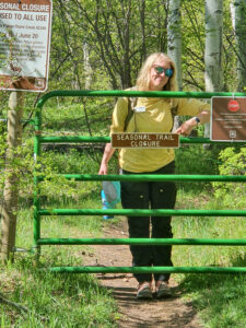 By late June, gates reopened, and ambassadors were back on open trails — greeting hikers and bikers, sharing trail conditions, and gently reminding everyone to leash their dogs and pack out their trash. Creative “trail odes” penned by ambassadors Emily and Mel even brought humor and poetry to the task of education.